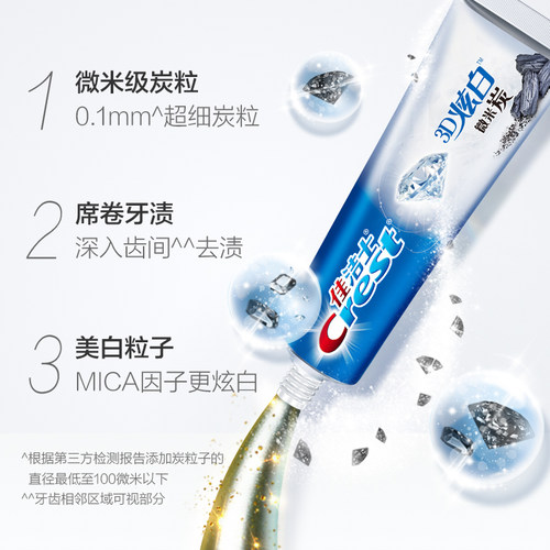 【发36支/箱】佳洁士120克牙膏3D炫白微米炭牙膏253786