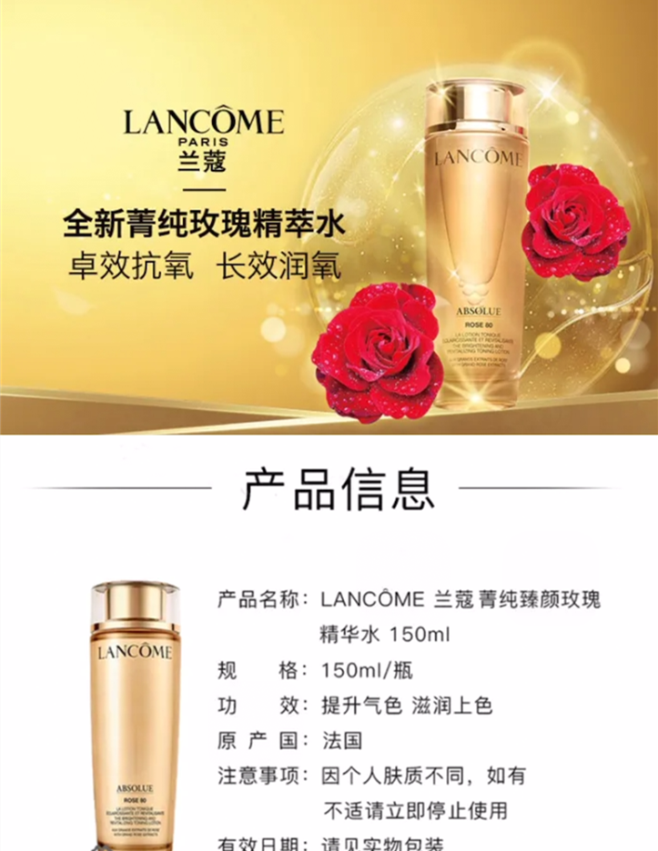 兰蔻菁纯臻颜玫瑰柔肤水锁水保湿滋润精华水兰蔻爽肤水150ml(批发价)