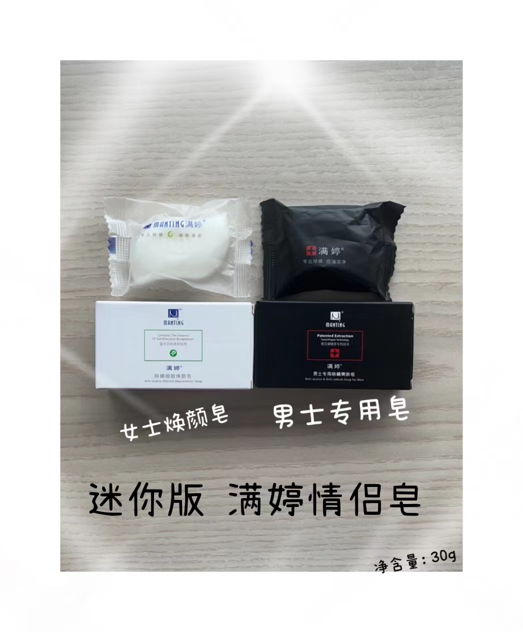 【发1箱144盒】满婷情侣迷你版细致焕颜30g/606500/男士专用爽肤皂30g/606494/