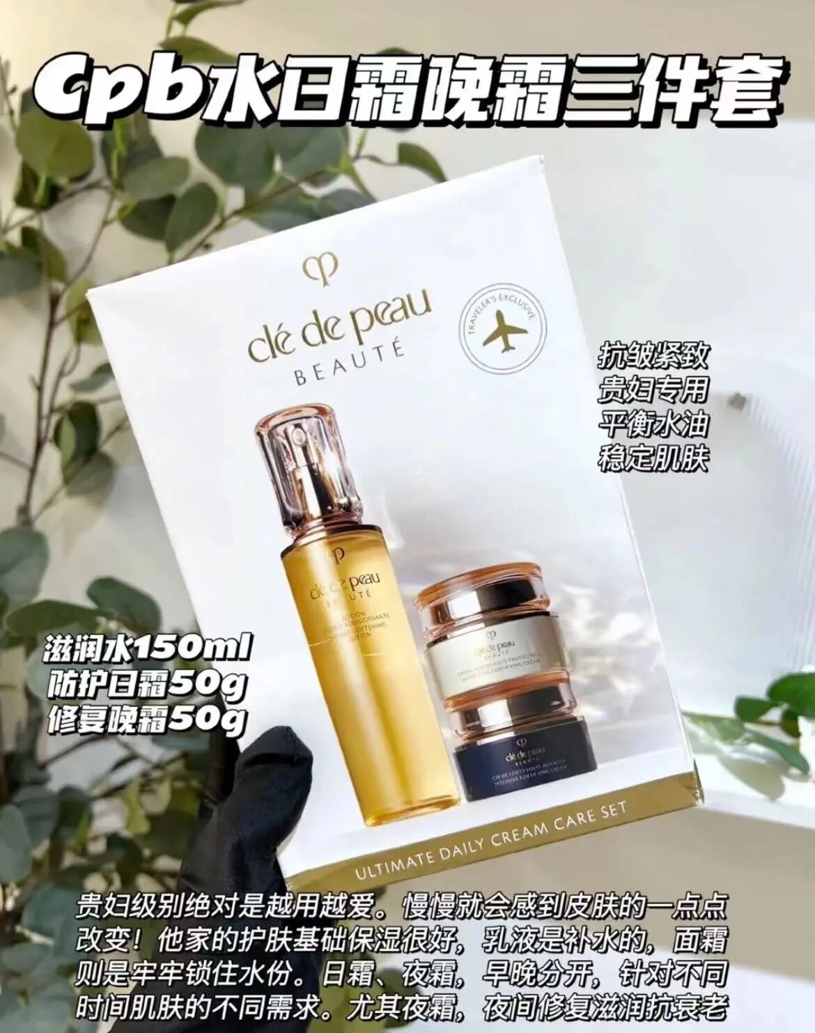 CPB日晚霜保湿露三件套盒紧致保湿化妆爽肤水护肤套装·日晚霜保湿露滋润款三件套【批发价】