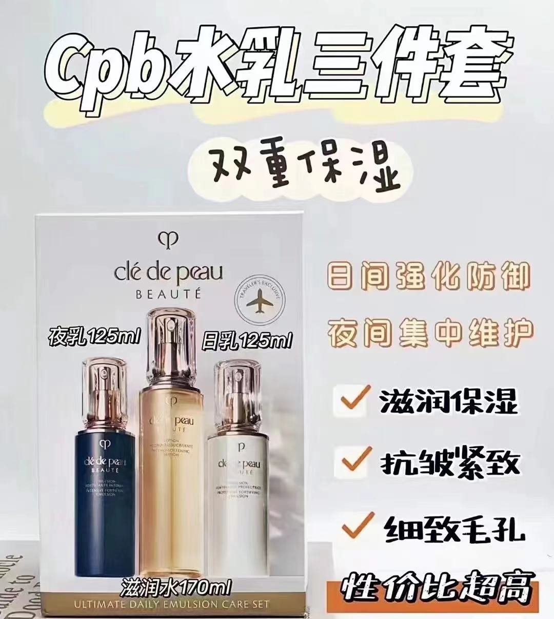 cpb光采赋活水乳护肤水乳三件套化妆水170ml+日乳125ml+夜乳125ml【批发价】
