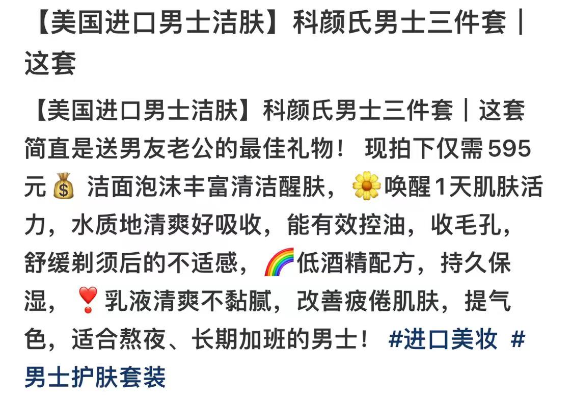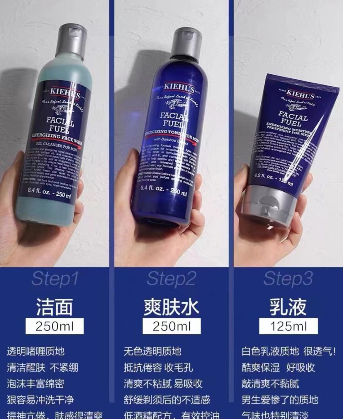 科颜氏男士三件套 洁面250ml][水250ml][乳液125ml]【批发价】