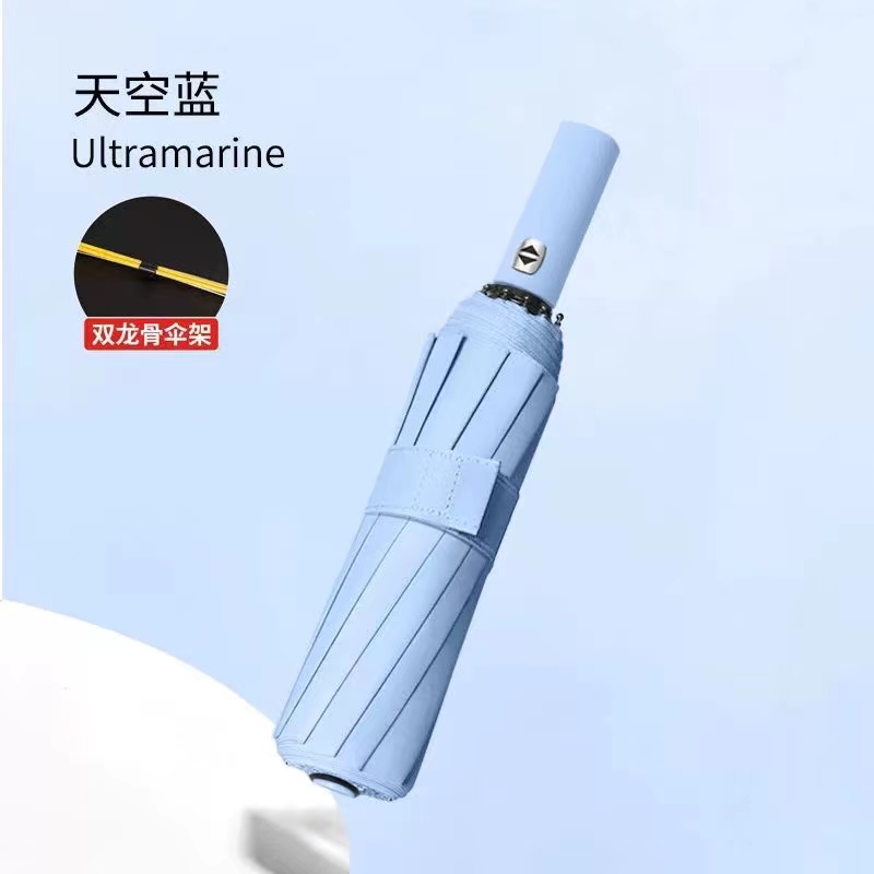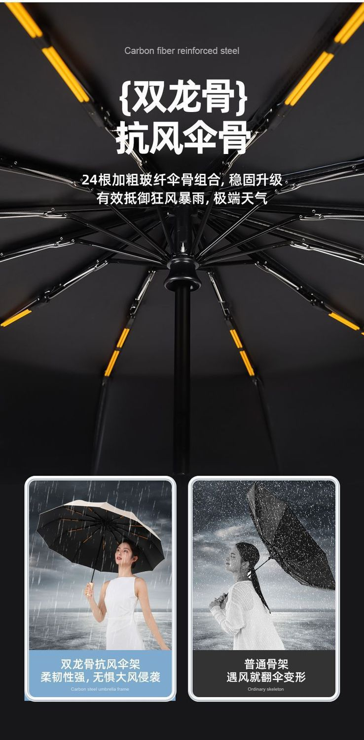 箱规/材质3:货号:2224 品名:全自动防紫外线24骨 伞架:全自动钢骨伞架 伞布:黑胶防紫外线布 手柄:塑料手柄 规格:58cm*24骨 伞下直径106cm 折叠后长34cm 包装:同色布套+OPP袋包装 数量:60支/箱 箱规:50*28*44 单把重量:0.38KG 整箱净毛重:22KG/22.5KG