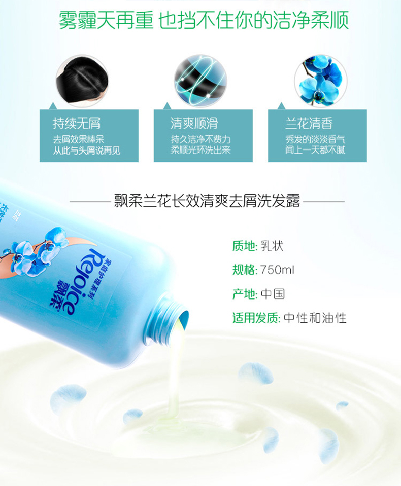 【发12瓶/箱】750家飘清爽去屑洗发水(兰花/079614
